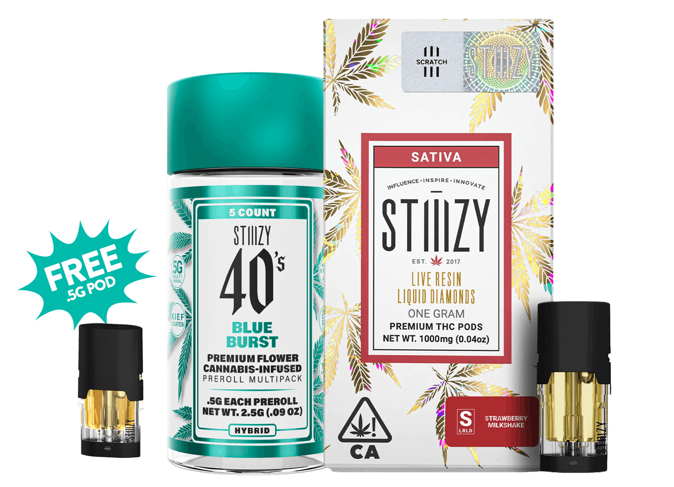 (1) 2.5g Stiiizy Infused Preroll Pack, (1) 1g Stiiizy Liquid Diamonds PodFree Stiiizy 0.5g Distillate Pod will be added at POS when picking up order!